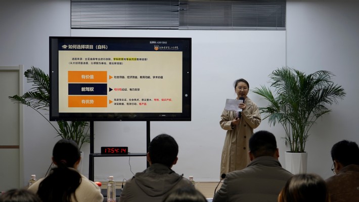 郝芙琪、侯英泽分别结合自身科研经历针对“如何选择优质的参赛项目”、“项目申报书的撰写”、“参赛注意事项”、“科研工作中的重难点和易错点”等方面分享自己的经验。最后,郑康威老师以“科研两三事”为出发点向各团队分享对科研的见解,并详细介绍如何开展科研项目选题、利用资源撰写申报书和高质量完成科研项目工作等方面展开详细讲解。