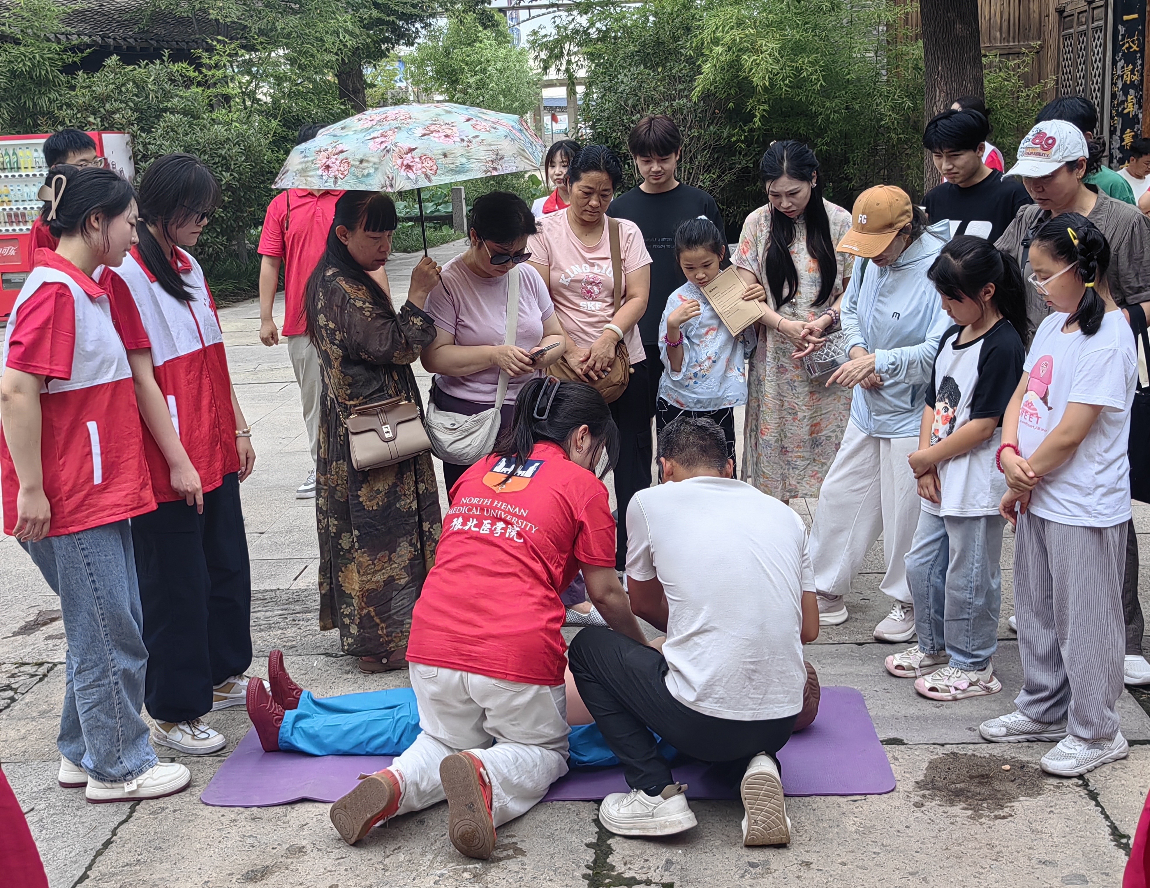 “豫北医学院赴开封‘宋韵守护,生命方舟’急救实践团”,将现代急救技能与宋韵文化传承深度融合。团队走进开封景区与社区,不仅面向游客、居民开展心肺复苏、海姆立克急救法等技能培训,提升公共应急救护能力;更以“宋韵”为魂,为急救培训注入文化内涵,让千年古都的历史底蕴与现代生命守护理念碰撞出独特火花,用专业行动守护宋韵之下的每一个鲜活生命。