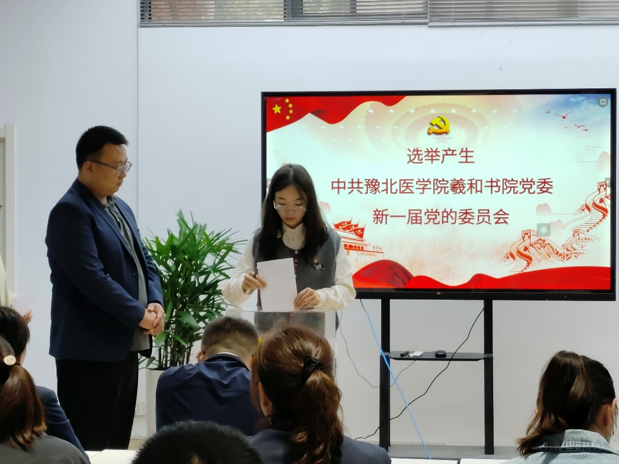 大会选举产生新一届中共豫北医学院羲和书院委员会委员。唐玉玲同志宣读了《中共豫北医学院羲和书院委员会选举办法(草案)》,经全体党员举手表决一致通过。推选并通过了监票人、计票人。全体党员代表以无记名方式投票。