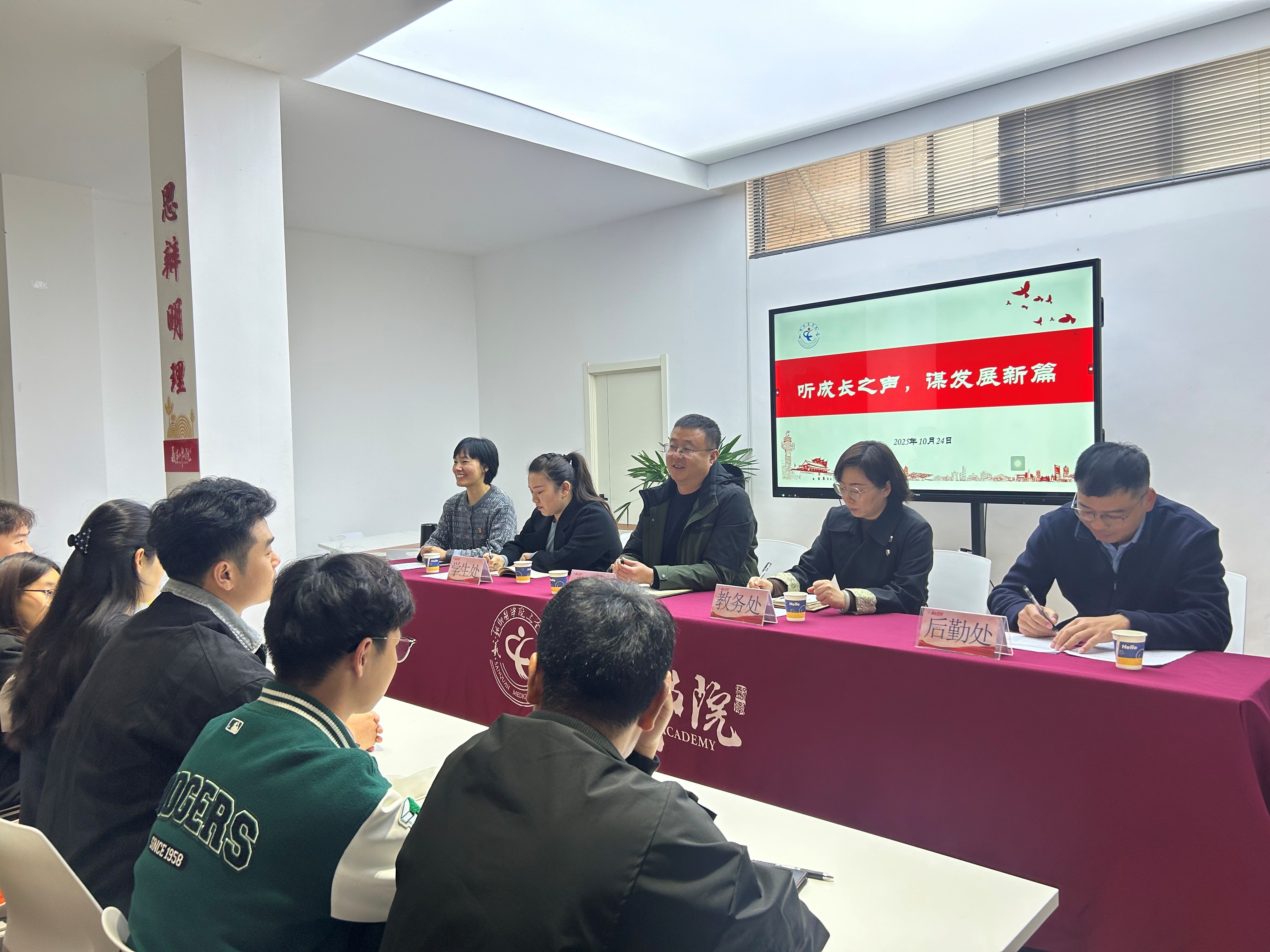 为搭建师生沟通桥梁,倾听学生成长心声,凝聚学校发展合力,10月24日中午,羲和书院在思哲辩论室开展“听成长之声,谋发展新篇”师生座谈会。教务处副处长衣志爽、学生处副处长桂冉、后勤处副处长徐中华、羲和书院党委书记张新与各专业学生代表面对面交流,围绕同学们关心的问题进行了现场回应与深入沟通。