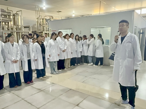 活动当日,同学们在卓峰制药相关负责人的引导下,有序参观公司的现代化生产车间、质量控制实验室以及省级技术研发中心。从原料的精密配比到制剂的无菌灌装,从先进的生产线到严格的质检流程,同学们亲眼见证了药品从原料到成品的每一道严谨工序。2025级学生王菁媛在参观后感慨道:“书本上的GMP(药品生产质量管理规范)标准是抽象的,但今天看到车间里一尘不染的环境和操作人员全神贯注的状态,我才真正理解了‘质量源于设计,重于生产’的深刻内涵。”