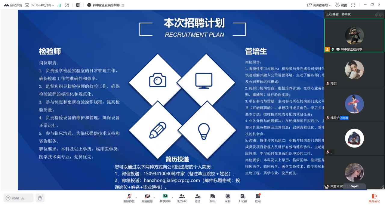 各招聘单位高度重视此次进校揽才的机会,通过播放宣传片、PPT展示、线上交流等方式,详细介绍公司的发展历程、企业文化、业务领域以及人才需求与培养体系。宣讲环节后,毕业生们纷纷就自己关心的岗位职责、发展空间、薪资待遇等问题与招聘代表进行深入沟通,并投递精心准备的简历。本月系列招聘活动累计发布岗位165个,收到简历60份,达成初步就业意向30人。