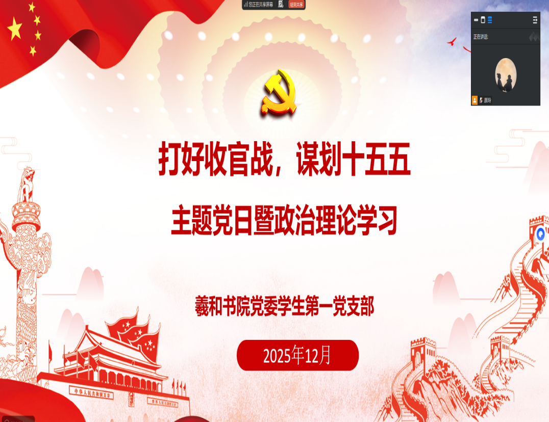 12月22日,羲和书院党委学生第一党支部组织开展“打好收官战 谋划十五五”主题党日活动。活动由党支部书记原玲主持,支部全体党员参加。