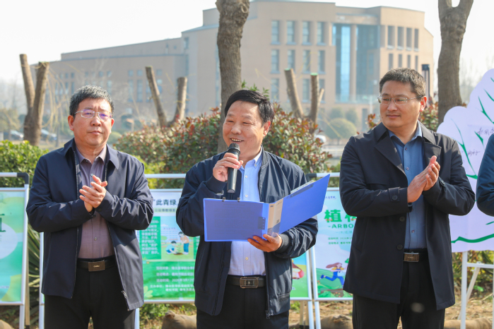 活动伊始,庄重温馨的启动仪式正式拉开帷幕。在场师生齐聚绿茵场地,伴着轻柔的春日旋律,共同聆听领导寄语与志愿倡议。副校长王志凯在致辞中强调,作为未来的医者,医学生不仅要守护病患生命、钻研医学技艺,更要懂得敬畏世间万物、珍视每一份生机,植树造林既是美化校园的环保之举,更是一堂生动的生命教育实践课,希望同学们以植绿为契机,把对草木生命的呵护,转化为行医路上的责任与担当,践行“健康所系、性命相托”的医者誓言。青年志愿者代表也向全体学子发出倡议,呼吁大家争做环保践行者、生命守护者,以实际行动为校园添绿、为青春赋能。