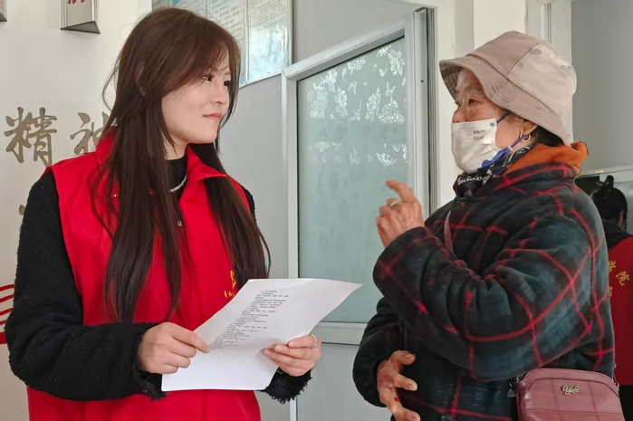 活动当天,羲和书院11名师生志愿者与老庄村卫生室医护人员携手开展免费血压、血糖监测服务。活动现场,志愿者们分工明确、秩序井然,以严谨细致的态度投入服务:测量血压时,俯身轻挽老人衣袖、精准调整袖带,不放过任何细节;采集血糖时,动作严谨规范,认真记录每一组监测数据。针对监测数值异常的老人,志愿者们结合专业知识,耐心询问其日常饮食、作息习惯,细致讲解注意事项,叮嘱老人及时到正规医院复查,用专业与贴心为老人的健康保驾护航,让便民服务真正落到实处。