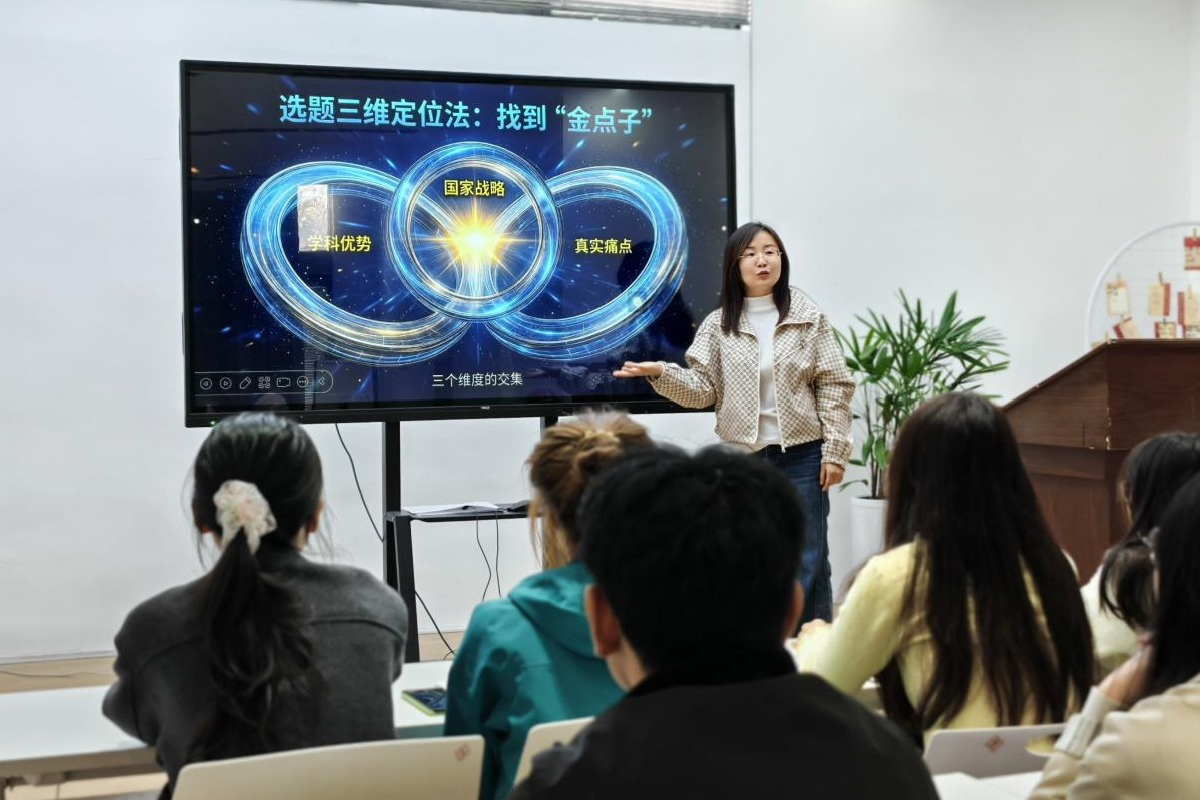 3月31日晚,周老师在弘学楼E101教室展开授课,她从项目选题的创新维度、科研成果的转化落地、申报材料的打磨技巧等方面展开全方位讲解,为学子梳理了从项目构思到成果呈现的全流程要点,并针对大学阶段科研规划给出了针对性建议。