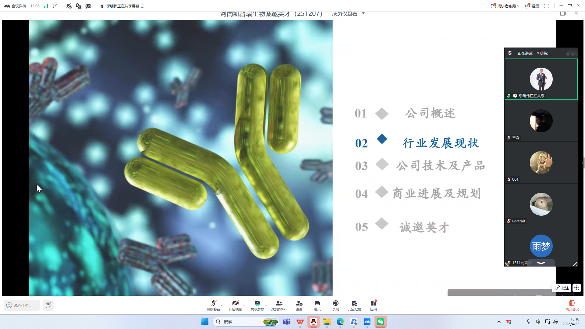 4月22日,第三场线上招聘会如期举行。河南凯普瑞生物技术有限公司重点推介生物技术研发、质量检测等核心岗位,并分享公司在生物试剂领域的前沿进展。学生通过弹幕和语音提问,互动高效。